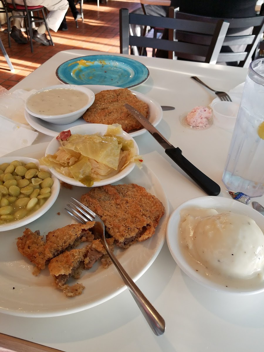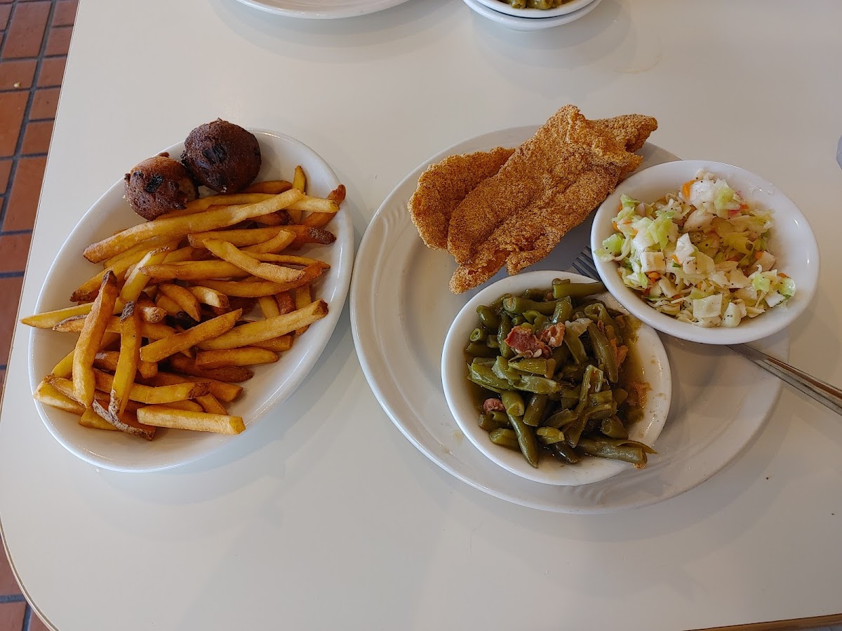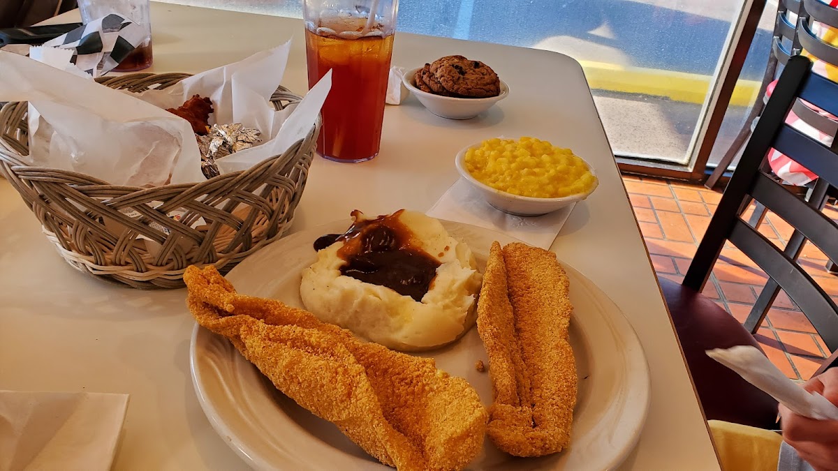 Menu highlights include the deep-fried catfish served with mashed potatoes and brown gravy, chicken fried steak, and a variety of breakfast options like country ham and skillet favorites. The food bar and salad offerings provide solid choices for those not ordering off the menu, balancing classic Southern meat-and-vegetable plates with lighter sides. Sweet tea, hush puppies, collard greens, and cobblers round out the experience with authentic regional touches.