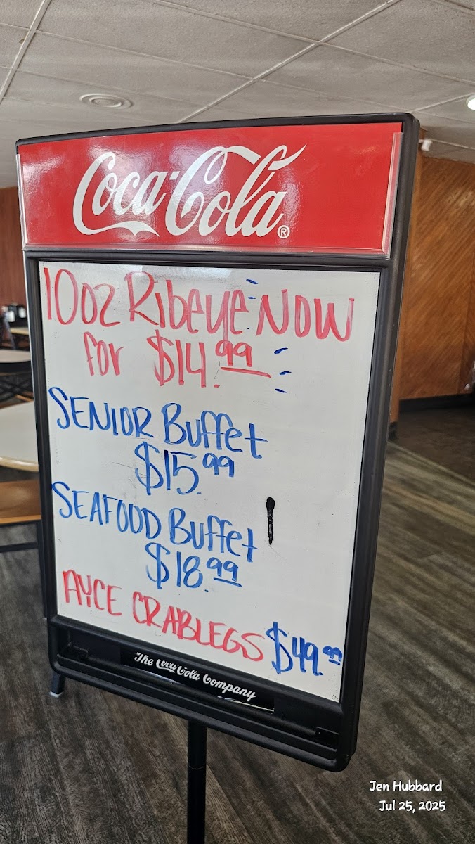Desserts like blackberry cobbler and peach cobbler provide traditional finishing options. Beverage selections include sweet tea, a common Southern staple, among other standard drink offerings.